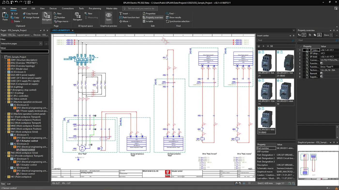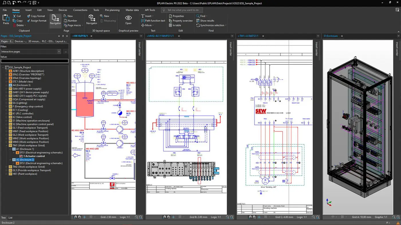 في هذه المرحلة من المشروع، نقدم لك الدعم في اختيار وتصميم وهيكلة جميع المكونات الكهربائية. بفضل خبرتنا الواسعة في التصميم الكهربائي، نقدم لك المخططات الكهربائية والوثائق التفصيلية لأنظمتك باستخدام أحدث برامج التصميم بمساعدة الكمبيوتر (CAD) مثل EPLAN P8 و WSCAD.